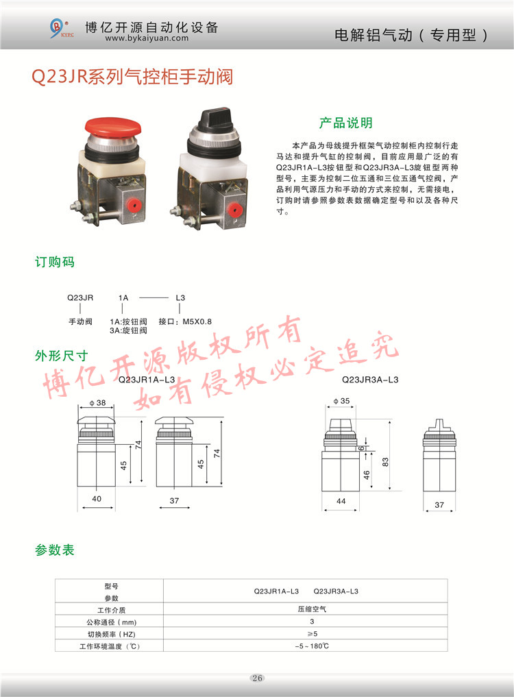 【產(chǎn)品型號(hào)】:Q23JR1A-L3按鈕閥,Q23JR3A-L3旋鈕閥