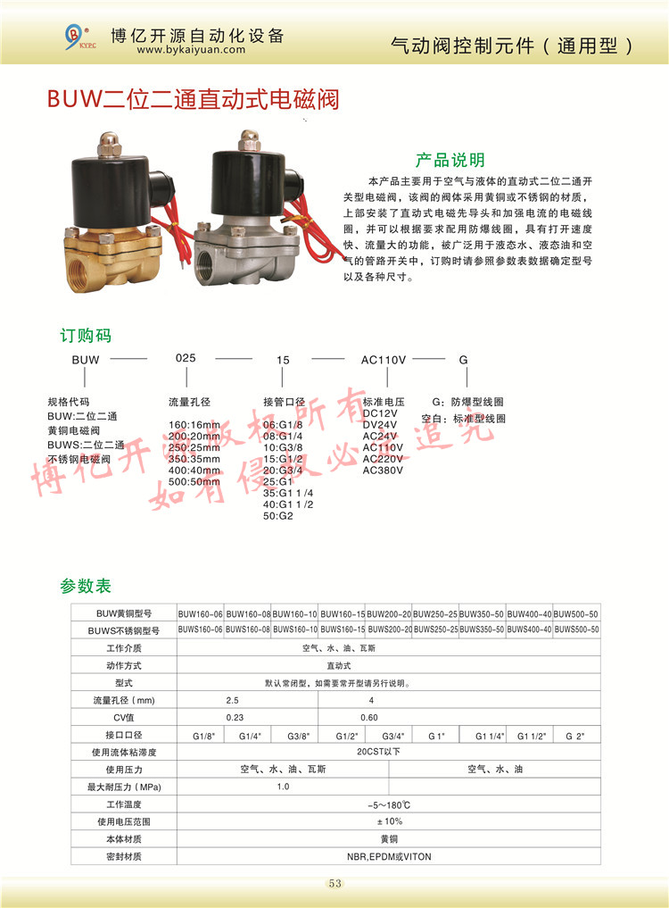 BUW二位二通液體電磁閥