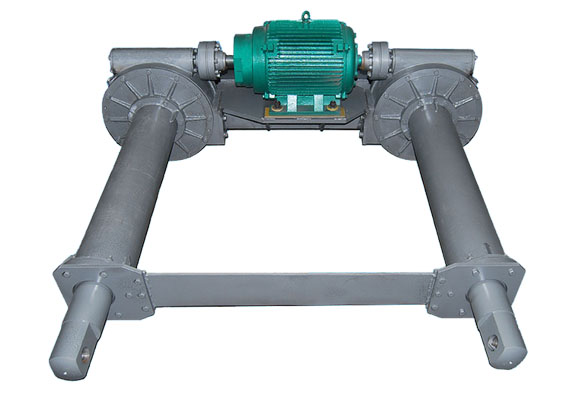 通過圓柱齒輪、傘齒、蝸輪蝸桿傳動,完成提升下降動作。工作過程:利用電機作為動力源,圓柱齒輪減速機進行次減速,減速后由換向齒輪箱改變傳動方向,通過主傳動軸傳遞到螺旋起重器蝸桿,蝸桿帶動蝸輪轉動,蝸輪體中心配有提升絲杠,蝸輪體帶動絲杠做上升下降運動,陽極炭塊固定在絲杠上。