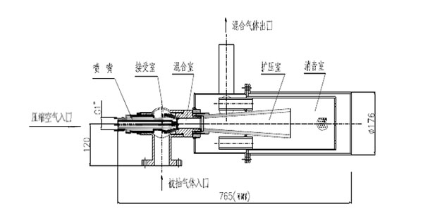工作原理:吸鋁引射器主要由噴咀、接受室、混合室、擴壓室與消音室組成。壓縮空氣(一次流體)以很高的速度從噴嘴流出到接受室,形成射流,產生卷吸流動.由于空氣流處于高速而出現(xiàn)一個負壓區(qū),被抽氣體(引射流體也稱二次氣體)吸進接受室,壓縮空氣與引射流體在混合室內混合,進行動量交換,流動過程中速度場漸漸分布均勻,隨后混合流體進入擴壓室,壓力因流速的降低而升高,在擴壓室出口處,混合流體的壓力高于進入接受室的引射流體的壓力,混合流體經(jīng)消音室消音與凈化后排入大氣。