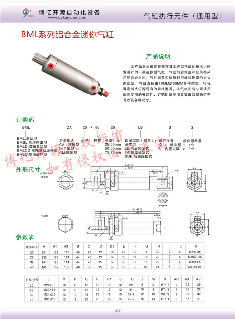 【產(chǎn)品名稱】:BML鋁合金迷你氣缸